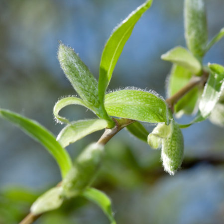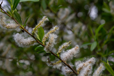 Brittle willow, Salix fragilis, blossom in spring with bokeh background, selective focus, shallow DOF