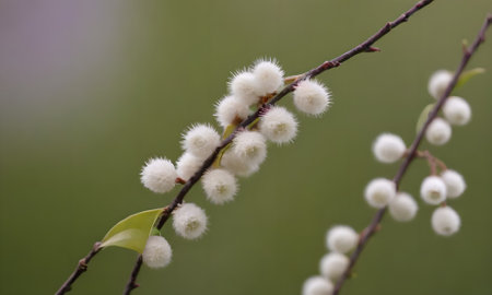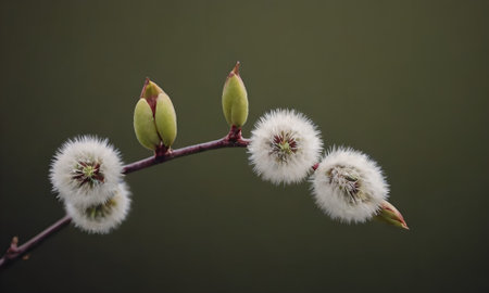 A close-up of willow catkins on the branch, with a blurred background. The willows have fluffy buds that resemble small feathers and exude an ethereal quality against the soft beige backdrop. This photo is in the style of nature photography and highlights the natural beauty of springtime. The banner format is suitable for easy placement in web pages or social media profile images. --chaos 30 --ar 16:9 --v 6.1 Job ID: 32e5bc45-3aa9-4f26-9be3-5eaac2ca12f8