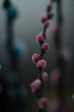 Flowering branches of a willow tree in spring. Shallow depth of field