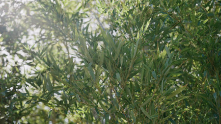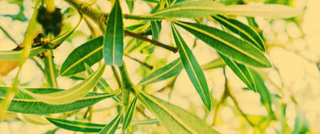 Botanical background, olive tree branches and leaves in summer, beautiful nature backdrop