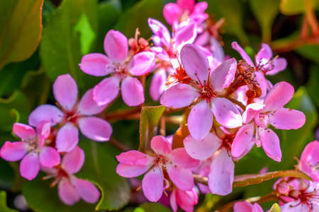 Yeddo hawthorn blossoms blooming by the roadside. Rosaceae evergreen shrub, Beach plants.