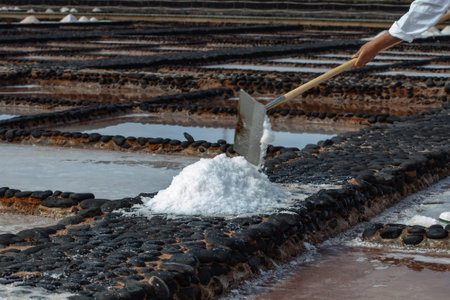 Sea salt works on salinas in Fuencaliente, south of La Palma island, Canary, Spain