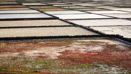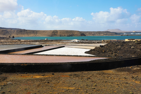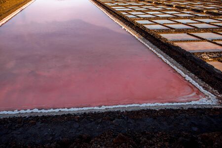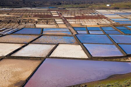Salt flats in Lanzarote of the Canary Islands, Spain. Salinas de janubio. Travel concept