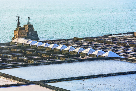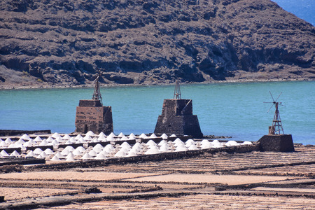 Traditional salt production in Salinas del Carmen on the island Fuerteventura