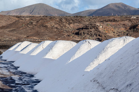 Fuencaliente saltworks, salt mountains with sunlight, La Palma, Canary islands, Spain