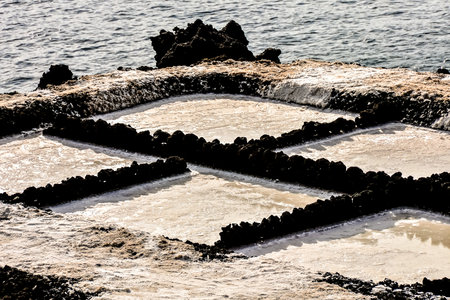 Tourist destination on south of La Palma island, salinas de Fuencaliente, natural sea salt production on Canary islands, Spain