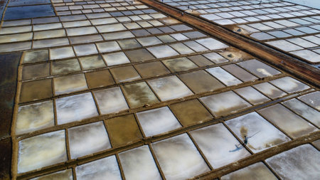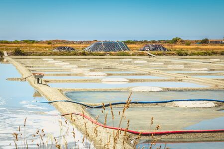 Traditional salt marsh of Noirmoutier, France during the salt harvest