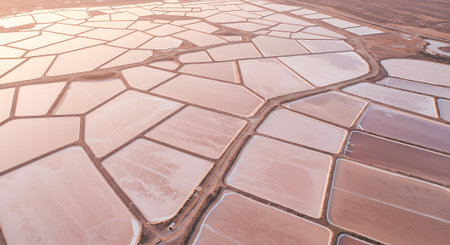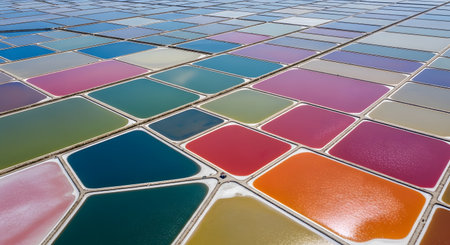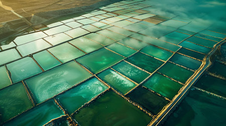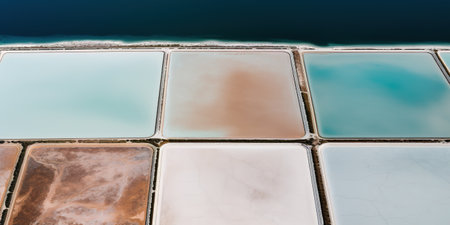An abstract aerial perspective captures the stunning, otherworldly beauty of salt evaporation ponds.