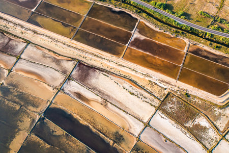 Aerial view of a salt farmer's pond in Nin, Croatia