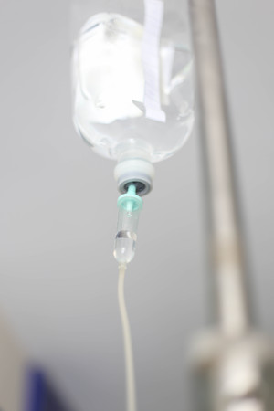 Medical intravenous IV drip in hospital used to replace liquids in patients in surgery in operating emergency room during operations.