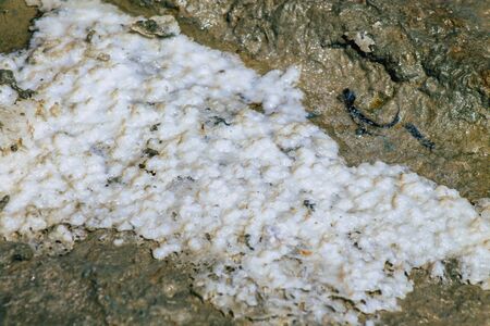 The crust of salt on the bottom of the curative mud dry lake. The surface of the salt lake.