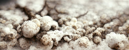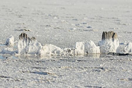 Salt formations in a dried lake of the saltworks near Burgas, Bulgaria, Eastern Europe - selective focus, copy space