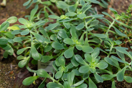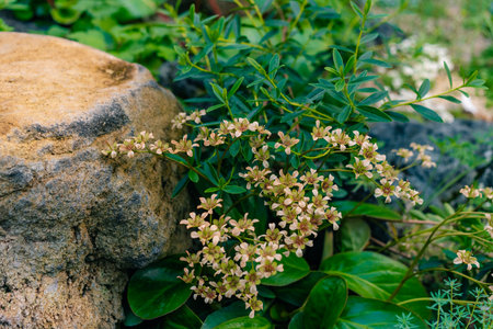 close-up of sedum succulent plant outdoor in sunny backyard shot at shallow depth of field