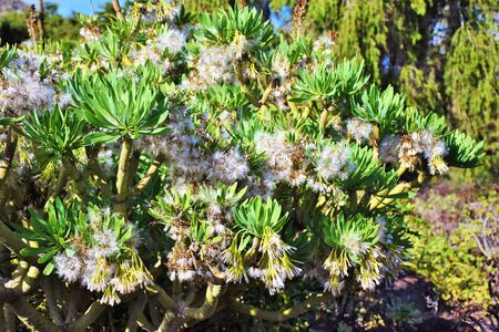 Flowers of Aeonium spathulatum, an endemic plant of the Canary Islands.