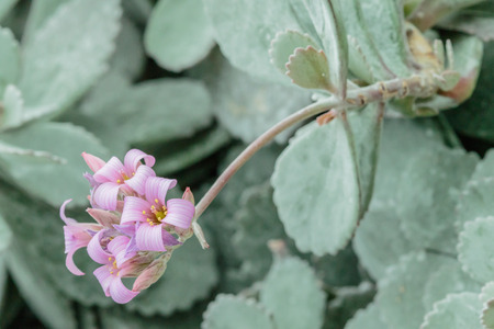 Kalanchoe, succulent plant flowers with water drops, soft focus macro