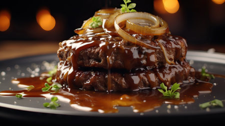 Delicious Hamburger Steak with Onions and Gravy AI Generated