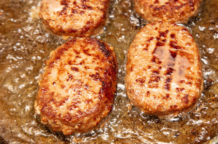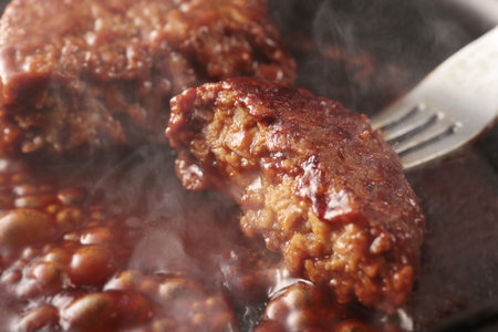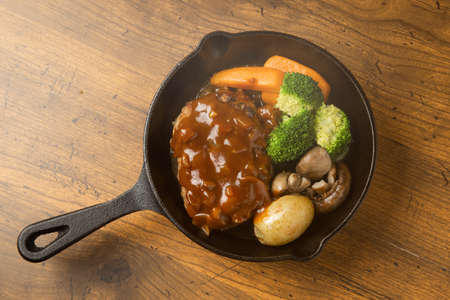 Skilet and freshly baked hamburger steak American dish hamburger steak