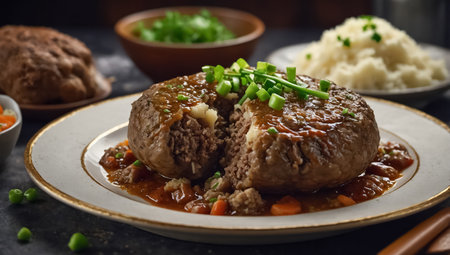 plant-based and vegan take on classic comfort food, with mashed potatoes and gravy, created with generative ai