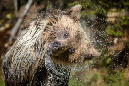 Brown Bear - Ursus arctos in typical nordic European forest, Finland, Europe
