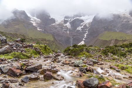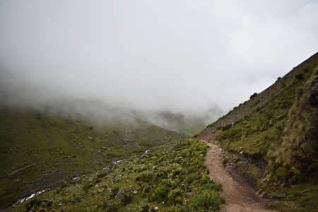 Beautiful misty mountain landscape along the Salkantay trek to Machu Picchu, Peru.