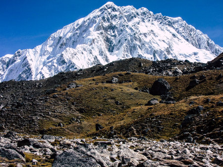 Amazing Shot of himalayas mountain peaks covered with white snow attract many climbers and mountaineers