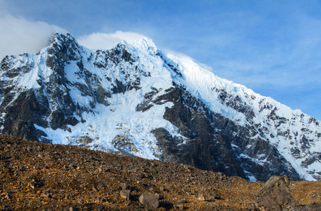 Evening view of mount Salkantay, Salcantay trek in the way to Machu Picchu, Cuzco area in Peru