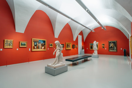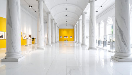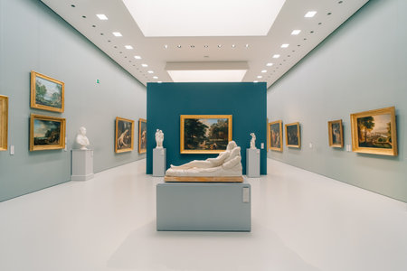 Explore a stunning art gallery showcasing a diverse collection of sculptures and paintings. This elegant space invites visitors to appreciate culture and craftsmanship.