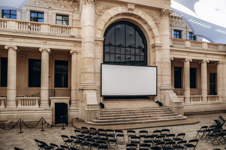Paris, France - September 6, 2025: Courtyard of Palais Galliera prepared for an outdoor event with seating and temporary installation