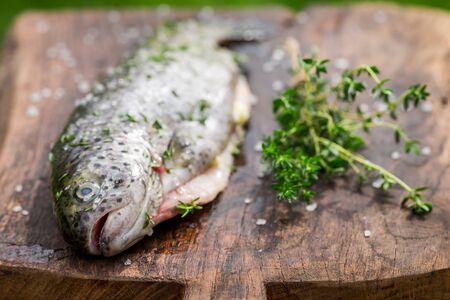 Fresh whole trout in the summer garden