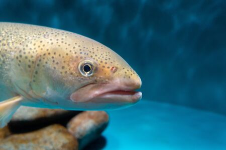 Close up image of a trout in an aquarium