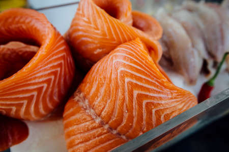 Raw fresh salmon fish prepare for sushi and sashimi.