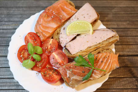 AI Generated. Appetizing salmon steak on a beautiful plate