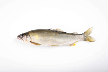 Fresh trout lies on smooth light surface, showcasing bright orange and silver hues. Ideal concept for seafood restaurants, culinary blogs, and fish markets.