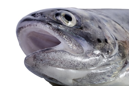 Captivating Close-Up: Stunning Isolation of Salmon's Natural Head on Green Surface