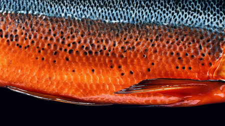 Generative AI : Salmon background trout fish fillet texture Copy space Top view