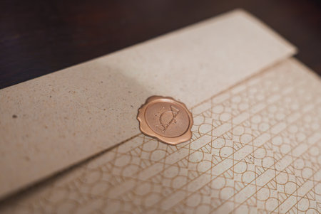 Elegant Envelope with Copper Wax Seal and Geometric Pattern Design