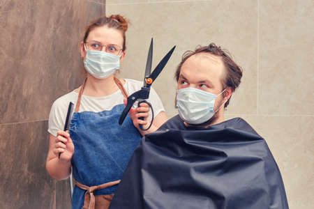 Haircut in a barbershop, beauty salon and world quarantine, business during quarantine. new
