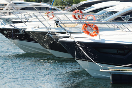Sopot, July 14: Luxury Speed Boats on July 14, 2020 at Sopot, Poland. Sopot is a seaside resort city in Eastern Pomerania