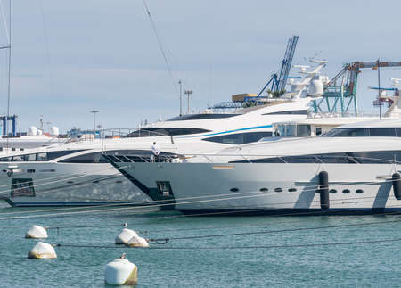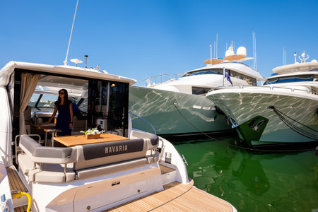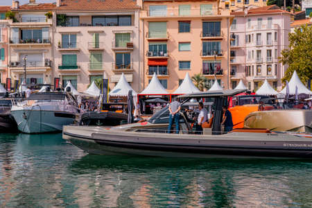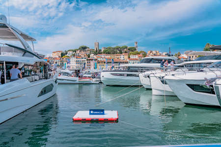 Cannes, France - 10.09.2021: Annual Yacht Show Festival in french riviera. The largest luxury yacht, new technologies in the world of yachts. Participants come from all the world for the yacht show.