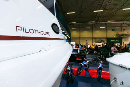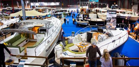 Leeuwarden, The Netherlands - February 8: Boat Holland indoor boat show at WTC Expo, Leeuwarden, The Netherlands