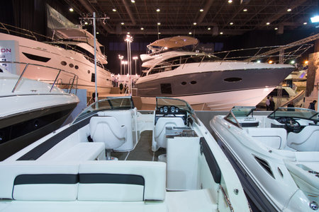 ISTANBUL - FEBRUARY 22: Boats in CNR Avrasya Boat Show on February 22, 2014 in Istanbul, Turkey.