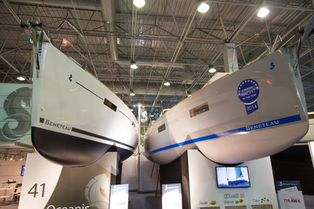 ISTANBUL - FEBRUARY 22: Beneteau Sailboats in CNR Avrasya Boat Show on February 22, 2014 in Istanbul, Turkey.
