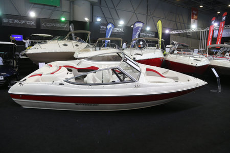 ISTANBUL, TURKEY - FEBRUARY 14, 2015: A stingray motor boat in 8. CNR Eurasia Boat Show, CNR Expo