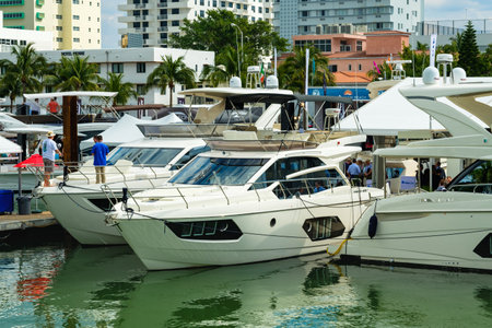 Miami Beach, Fl USA - February 17, 2017: The popular Miami International Boat Show features more than 3,000 boats and 2,000 exhibitors from all over the globe.