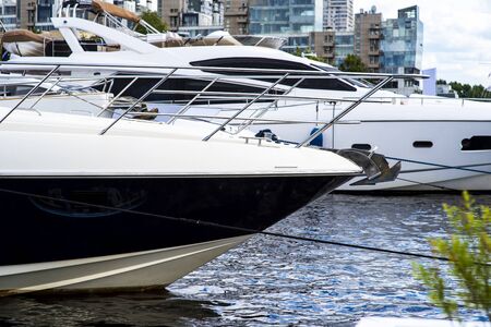 Moscow, Russia - July 09.2016. Pleasure boats at the pier of the yacht club Shore House