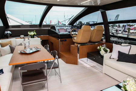 NORWALK, USA - SEPTEMBER 21, 2017: Riva 76 Perseo from Ferretti Group exhibit view in Norwalk Boat Show 2017