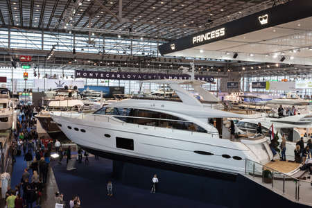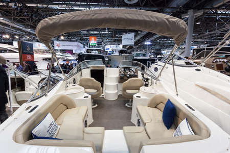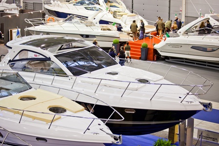 Rome, Italy, February 19, 2011: Big Blue Rome Sea Expo - Boat Show After the first 4 editions success with over 140,000 visitors, the Boat Show returns to Rome to please sea-going fans. In this picture the stand of Cranchi exposing luxury motor boats over