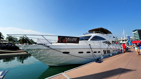 Luxury yacht by Northrop & Johnson on display at the Singapore Yacht Show 2013 at One Degree 15 Marina Club, Sentosa Cove April 20, 2013 in Singapore