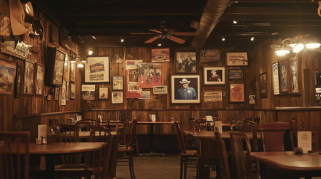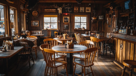 Rustic dining area with western-themed decor and wooden tables at a country restaurant
