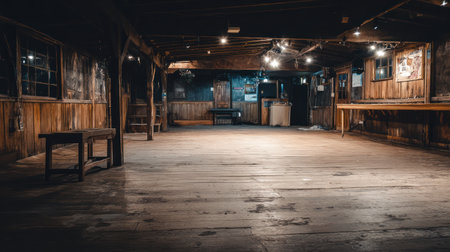 Rustic barn-style event setting, wooden beams, country decor, and cozy lighting, suitable for cooking or crafting streams Generative AI
